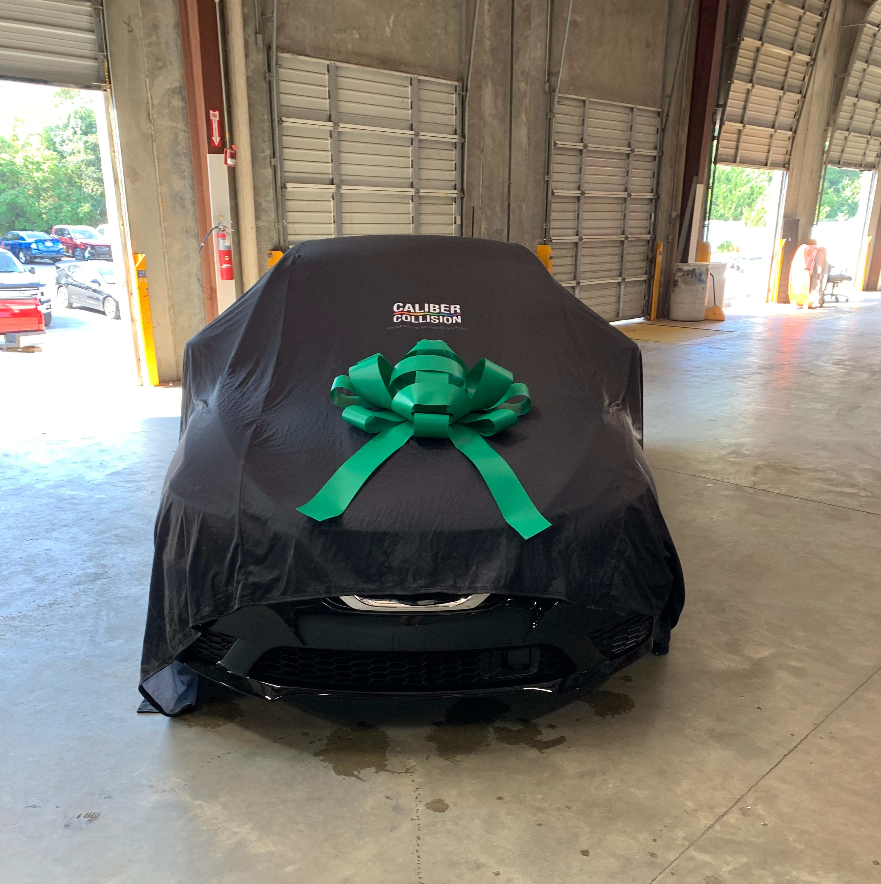 Caliber Collision preparing a restored vehicle for the NABC Recycled Rides program.